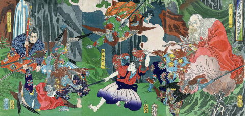 月岡芳年 作 源牛若丸僧生坊に武術覚図